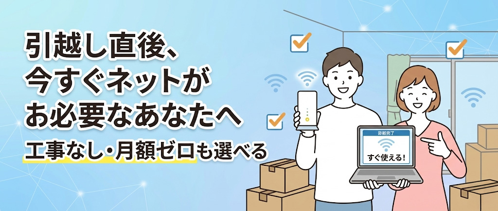 引越し直後、今すぐネットが必要なあなたへ|工事なし・月額ゼロも選べる