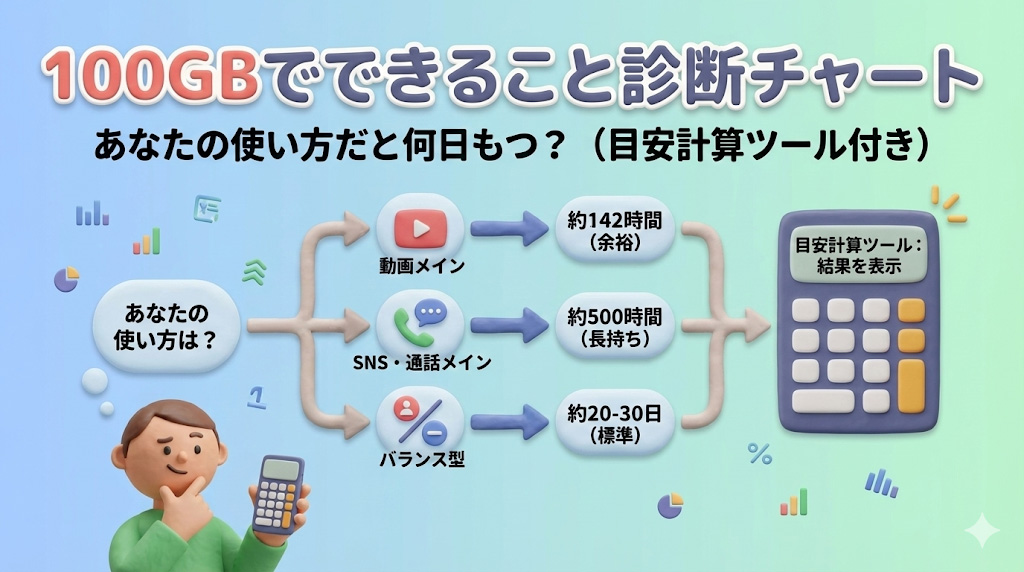 100GBでできること診断チャート|あなたの使い方だと何日もつ?(目安計算ツール付き)
